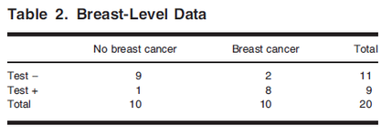 - Patient level analysis의 SP 0%가 Breast level에서는 90%가 됨