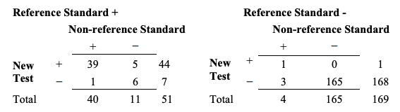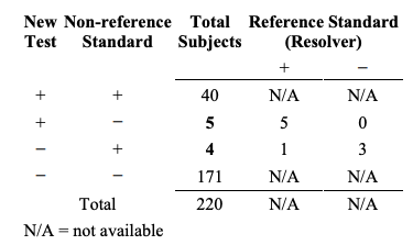 Table 4. Example of results comparing a new test to a non-reference standard for 220 subjects