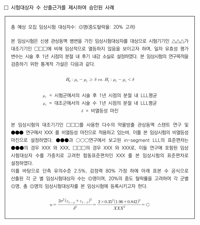 - 시험대상자 수 산출 예시