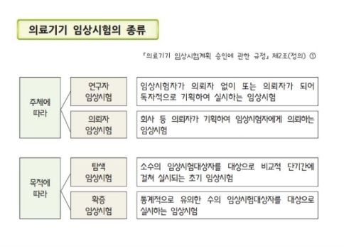 - 의료기기 임상시험의 종류 (의료기기 임상시험계획 승인에 관한 규정 제2조)